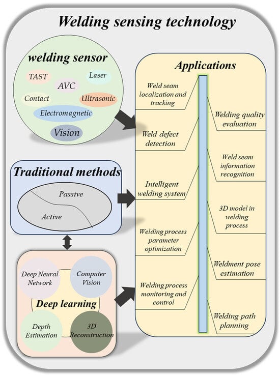 - Eren, B.; Demir, M.H.; Mistikoglu, S. Recent Developments in Computer Vision and Artificial Intelligence Aided Intelligent Robotic Welding Applications. Int. J. Adv. Manuf. Technol. 2023, 126, 4763–4809. [Google Scholar] [CrossRef]