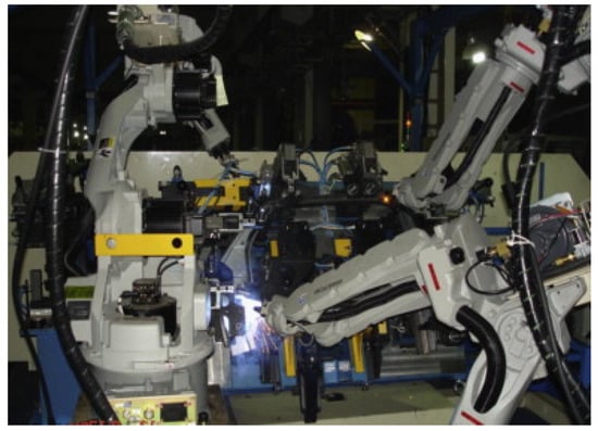 - Pellegrinelli, S.; Pedrocchi, N.; Tosatti, L.M.; Fischer, A.; Tolio, T. Multi-Robot Spot-Welding Cells for Car-Body Assembly: Design and Motion Planning. Robot. Comput.-Integr. Manuf. 2017, 44, 97–116. [Google Scholar] [CrossRef]