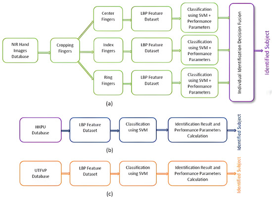 Finger Texture identification algorithm for (a) NIRHI, (b) HKPU and (c) UTFVP.