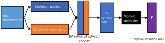 where is a convolution operation, the filter size is , and and are the characteristics after average pooling and maximum pooling, as shown in Figure 4.