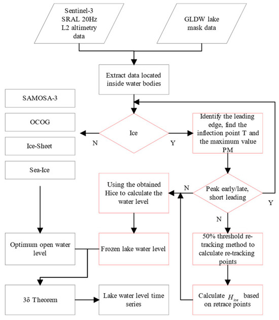 The main steps for estimating the water level of a lake covered with lake ice from the SRAL altimeter are as follows: