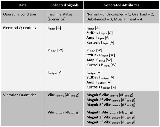 Thus, the selection of attributes pertaining to electrical quantities is hereby concluded. Based on this analysis, we decided to adopt only one input current sensor in the frequency inverter, with only three attributes generated from it: I-input_A, StdDev_I_input_A, and Kurtosis_I_input_A.