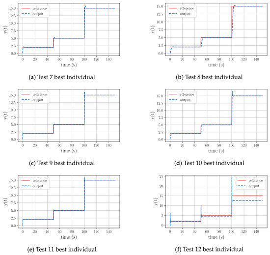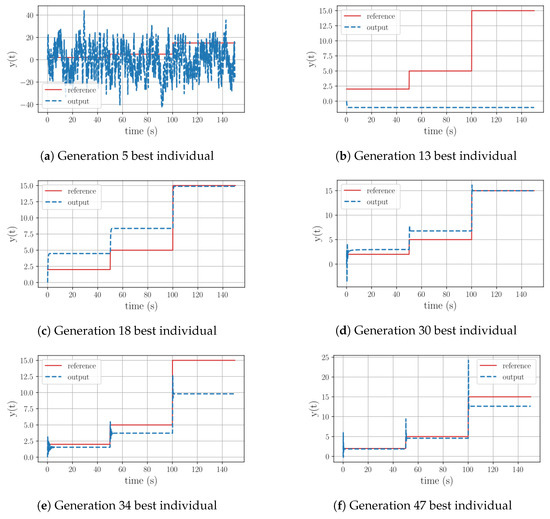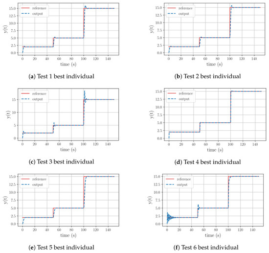 From the previous groups of tests, the results confirm that the proposed algorithm is capable of generating control equations for complex systems. Depending on the systems’ complexity, an increased number of generations is needed to find a suitable solution. Furthermore, it is also proved that the program can address control problems related to first-order plants.