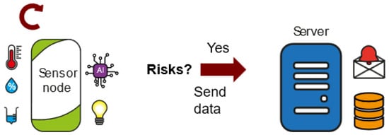 The sensor node, through the algorithm, sends notifications as soon as a change in risk level is detected, as opposed to waiting an entire day to send the information to the server.