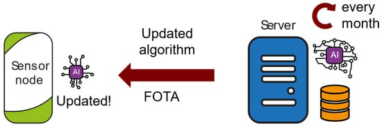 Figure 4): Once a month, the server uses the collected environmental data to retrain each machine learning algorithm. These algorithms, which are specifically trained for each sensor node, are updated thanks to the Firmware Over The Air (FOTA) feature. This allows the algorithm to adapt to different terrain conditions, depending on where the device is installed.