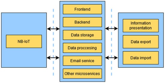 Figure 10 shows a diagram with the basic microservices architecture involved in the information management system, as well as other intermediate middleware resources useful for the correct development of the system (security layers, load balancing management, reverse proxy, etc.).