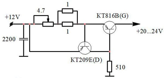 Electronic circuit of the filament protection unit (the sensitive element of the hot-wire anemometer sensor) in setup mode: KT816B(G)—transistor; KT209E(D)—transistor.