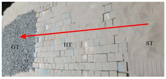 When the rover is traversing on HT or GT, there is no obvious wheel trace on the terrain, but there are SURFF feature points that do not exist on ST. The wheel trace boundary extraction and matching proposed by Lv et al. [23] for slip ratio estimation are replaced by the terrain SURFF feature point extraction and matching. The forward displacement ΔS of the wheel can be estimated by detecting the SURFF feature points in the wheel–terrain images acquired at two adjacent moments, thereby estimating the wheel slip ratio, as shown in Figure 22b.