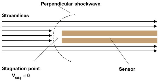 The second option is a suitably shaped temperature sensor fitted with a tip corresponding to the given flow so that a cone shock wave is created on the front of the sensor, beyond which the velocity of the flow does not decrease to subsonic speed and there are no step changes in state variables []. In addition, these changes occur behind the tip of the sensor, not in front of it.
