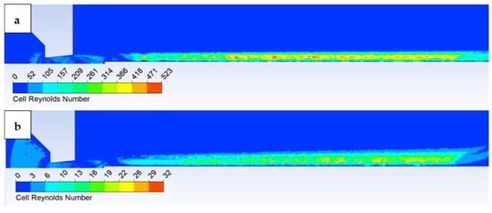 These analyses were performed as a comparison of the issue in both atmospheric pressure and the low-pressure region at the boundary of continuum mechanics [,]. The effect of the changed ratio of inertial and viscous forces due to low pressure was evaluated, but still in the region where low pressure does not affect the viscosity value.