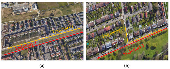 Different types of overlapped trajectories. The left image (a) illustrates the challenging overlapped view. The right image (b) illustrates the normal overlapped trajectories.