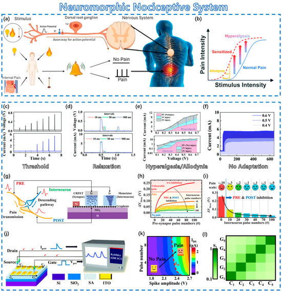 - Feng, G.; Jiang, J.; Zhao, Y.; Wang, S.; Liu, B.; Yin, K.; Niu, D.; Li, X.; Chen, Y.; Duan, H.; et al. A Sub-10 Nm Vertical Organic/Inorganic Hybrid Transistor for Pain-Perceptual and Sensitization-Regulated Nociceptor Emulation. Adv. Mater. 2020, 32, 1906171. [Google Scholar] [CrossRef] [PubMed]