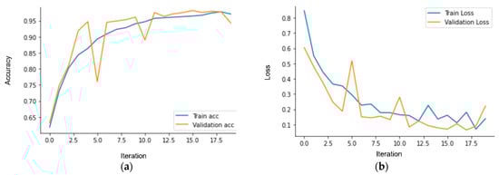 VGG-19 training and test: (a) accuracy and (b) loss.