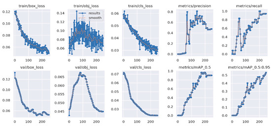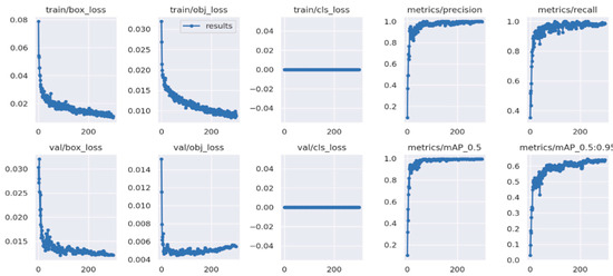 The YOLOv5 method was used for both mounting regions of interest detection and cow identification. For this reason, two models were created separately for each dataset. YOLOv5 is a convolutional neural network (CNN) architecture that was introduced in 2020 as an evolution of the popular YOLO (You Only Look Once) object detection model [42]. YOLOv5 is designed primarily for real-time object detection and recognition tasks, including the detection of people, vehicles, and animals. Its acronym stands for ”You Only Look Once”, referring to its ability to quickly and efficiently make object detection predictions in a single step. YOLO divides the input image into an N × N grid, and each grid cell determines the presence of an object within its area, considering the object’s center. The grid cell that determines the center of the object will also find the class, height, and width of the object and draw a bounding box around it [43]. This simplifies the architecture and improves speed and accuracy. In our study, the dataset was labeled as positive or negative, and the YOLOV5 model, which is the 5th version of YOLO, was trained on this dataset for 150 epochs.
