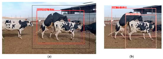 Cascaded system results: (a) mounting detection and (b) cow identification after from mounting detection crop.