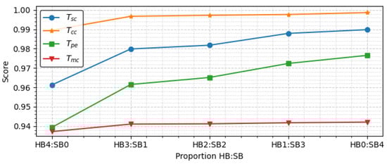 Figure 9. Score comparison according to the proportions of HBs and SBs (SNR: −4 dB).
