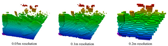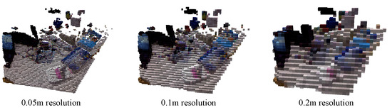 - Hornung, A.; Wurm, K.M.; Bennewitz, M.; Stachniss, C.; Burgard, W. OctoMap: An Efficient Probabilistic 3D Mapping Framework Based on Octrees. Auton. Robot. 2013, 34, 189–206. [Google Scholar] [CrossRef]