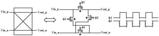 Similar to conventional CMOS operational amplifiers, DDAs also encounter limitations related to DC offset and low-frequency 1/f noise. These non-ideal effects can be mitigated using well-established dynamic offset cancellation methods. These methods commonly involve auto-zero techniques [21,22] and chopper stabilization techniques [23,24,25,26,27]. The chopper stabilization technique is a continuous-time design which can effectively reduce low-frequency noise and DC offset by modulating and demodulating signals in continuous time. It can achieve offset voltages of several microvolts and diminishes 1/f noise to over ten times lower than the original circuit without the chopper stabilization technique. However, the majority of chopper amplifiers that are designed will consume high power. This is mainly because a higher supply is needed to operate choppers, which are realized by MOS switch transistors in the triode region.