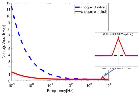 Input-referred noise spectrum of the chopper-stabilized DDA.