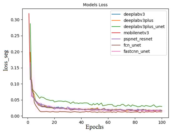 During the training process, more training data were generated by rotating, flipping, scaling, and horizontally flipping the dataset, which enables the network to better evaluate the learning and enhance its generalization ability. To assess the segmentation effects of different network structures, all models were implemented in Python using the PyTorch library, and a server equipped with two NVIDIA 3090 GPUS was used to ensure consistent hardware configuration across all models.