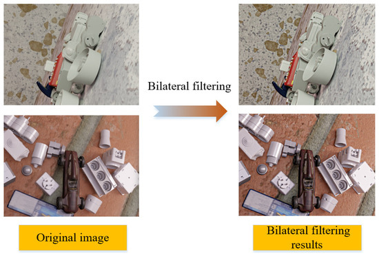 Moreover, bilateral filtering considers the grayscale difference between pixels. The grayscale difference serves as a weighting coefficient, multiplied by the pixel value, and then applied as a weighted average to each pixel. This weighted average operation effectively preserves edge information in the image. An example is illustrated in Figure 3.