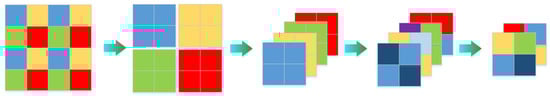 The slice merging layer, as previously described, plays a crucial role in downsampling the feature map. However, in the context of the composite Swin Transformer structure1, a patch merging layer is employed to downsample the feature map, as illustrated in Figure 5. The resulting four feature maps are then concatenated along the depth direction and passed through a LayerNorm layer. To conclude, the depth of the feature map undergoes a linear transformation from C to C/2 through a fully connected layer.