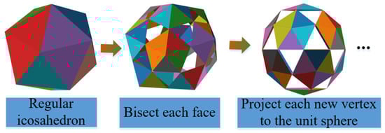 To acquire template images uniformly distributed in SO(3) space, as illustrated in Figure 7, the sampling process entails placing the virtual camera at viewpoints where the vertices of the almost ortho-polyhedron are sampled from the recursive triangular decomposition of the hemisphere above the object.