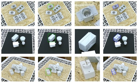 - Hodan, T.; Haluza, P.; Obdržálek, Š.; Matas, J.; Lourakis, M.; Zabulis, X. T-LESS: An RGB-D Dataset for 6D Pose Estimation of Texture-Less Objects. In Proceedings of the 2017 IEEE Winter Conference on Applications of Computer Vision (WACV), Santa Rosa, CA, USA, 24–31 March 2017; pp. 880–888. [Google Scholar]