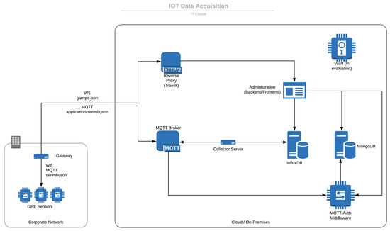 Figure 1. Overall architecture of the IoT gauge monitoring platform.