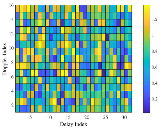 Within this equation, the term signifies the existence of additive white Gaussian noise (AWGN), represented as . On the other hand, denotes a complex baseband channel impulse response, where and represent the channel’s reaction to an impulse with DD shift ( and , i.e.). The equation is