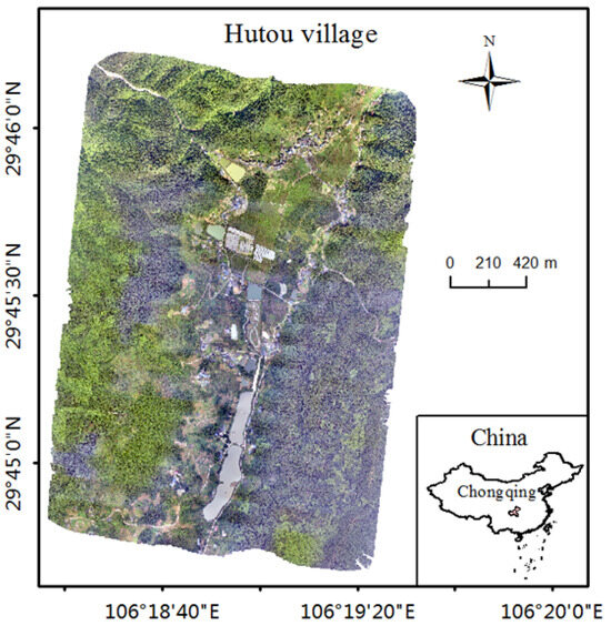 Digital orthophoto model of Hutou Village in Beibei District, Chongqing, China.