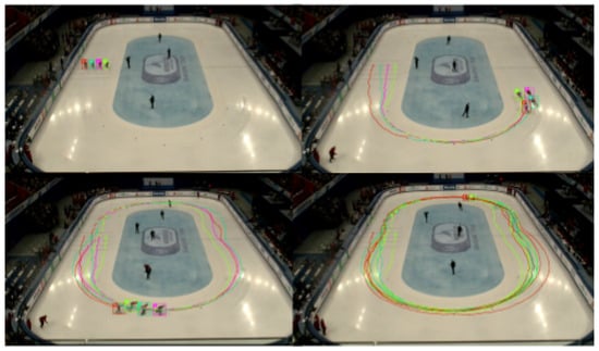 Visualized trajectories of teal short track speed skating competitions.