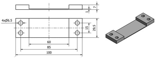 We worked with thin-walled samples in the horizontal orientation. A horizontal wall of 1.0 mm thickness was made across the entire width of each sample (equal to 29.5 mm) and the length of 60.0 mm; see Figure 1. An 8 mm thick sheet of metal was used for the samples, which was ground (on both sides) to a dimension of 7.0 mm using a SGA3063AHD surface grinder manufactured in Poland by the company Jazon (Białystok, Poland). Then, 30 × 101 cubes were cut using a WaterJet HWE-P 1520 machine tool supplied by the German company H. G. Ridder Automatisierungs GmbH (Hamm, Germany). In the final step, the bar was milled to a dimension of 29.5 × 100 mm and mounting holes of ∅6.5 were drilled (for mounting in the adapter) on a DMC 1150 V machine (manufactured and provided by German company DMG Mori (Wernau, Germany)).