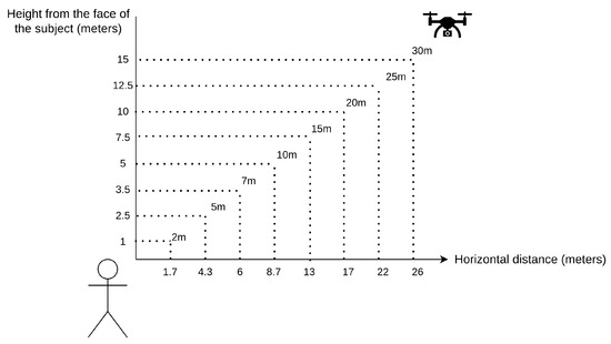 Several studies have explored both the influence of the distance from the UAV to the person and the angle between them. Certain findings suggest that the distance and the depressing angles are crucial constraints in face verification systems, particularly when the UAV is positioned at high altitudes [
