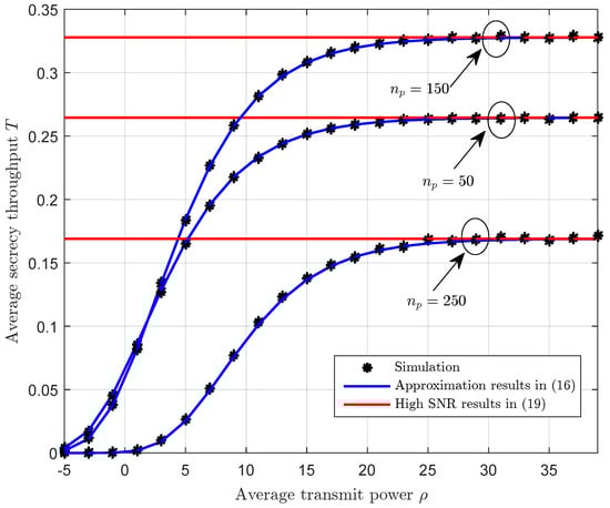 From (25), it is worth noting that due to the fact that as . This is because the transmission rate as . However, when , the secrecy capacity of the considered system is not zero.
