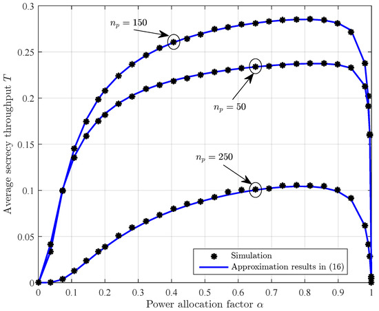 Figure 3 depicts the average secrecy throughput versus the power allocation factor with different channel training length. We observe that the average secrecy throughput increases as the power allocation factor increases from 0 to an optimal value but later, it starts decreasing as the power allocation factor increases from its optimal value. This can be explained as follows. When the power allocation factor is too small, there is less power available for data transmission, which, of course, will result in poor average secrecy throughput. When the power allocation factor is too large, there is less power available for channel training which, consequently, also leads to poor average secrecy throughput. Although an explicit solution for the optimal power allocation factor is intractable due to the complexity of the average secrecy throughput expression, the solution can be obtained offline by numerical search methods, for example, the gradient-based search method.