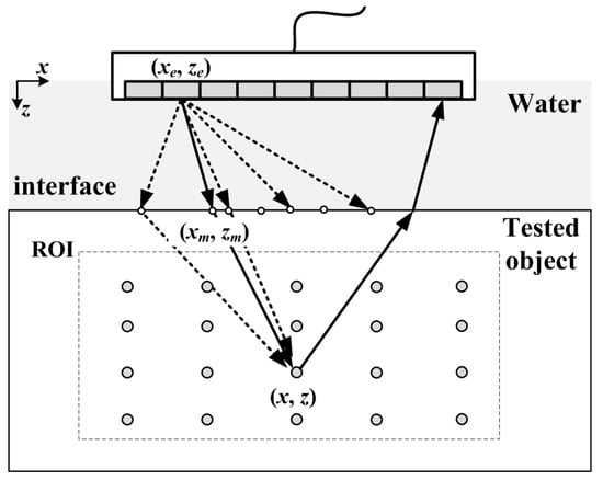 - Zhang, J.; Drinkwater, B.W.; Wilcox, P.D. Efficient immersion imaging of components with nonplanar surfaces. IEEE Trans. Ultrason. Ferroelectr. Freq. Control 2014, 61, 1284–1295. [Google Scholar] [CrossRef]