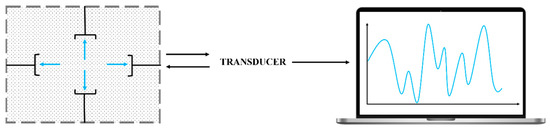 Metal–organic frameworks (MOFs) have arisen as a promising option in the gas sensor industry. Such sensors are fabricated by assembling metal nodes with organic linkers [73,74,75,76,77,78]. MOFs sensors have different working principles, such us refractive index sensing [78,79,80], chemical resistance [81,82], mass sensitive mode [77,83], electrochemical impedance spectroscopy [67,84], responsive fluorescence [74,75,85] or variations in the luminescence properties [86]. Their high surface-area-to-volume ratio is especially beneficial for sensing applications, as it increases the possibility of interaction between sensing materials, leading to high sensitivity, as well as having high thermal and chemical stability [67,74,75,85]. Sensors require two main components: a sensing layer and a transducer, as shown in Figure 4. The sensing layer interacts selectively with the target analytes, so that various changes in the physicochemical properties of the system (e.g., capacitance, mass, conductivity, optical properties, etc.) are detected, and the transducer translates the changes into measurable signals.