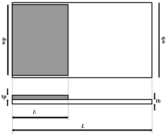 The analytical model used assumes that the piezoelectric-driven cantilever obeys the Euler–Bernoulli (EB) beam theory, where the thickness of the beam is considered very small compared to its length L. The microcantilever beam is considered to have a total length L, width , and thickness . The piezoelectric patch is of the length , width , and thickness . E and I denote Young’s modulus and variable moment of inertia, respectively. From this point, henceforth, subscripts p and b indicate the designation of the property to the piezoelectric layer or elastic beam layer, respectively, and n denotes the numbering of the section under consideration.