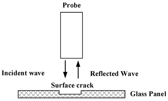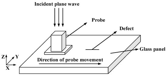 The quality of a glass panel is a key factor in the touch performance and optical performance of the panel. In the glass shape processing, tempering, polishing, screen printing and other production processes, it is easy to cause panel scuffs, scratches, chipping, bubbles and other defects, among which crack-like defects are the most common and should be identified and eliminated in real time during the manufacturing and production processes []. At present, the surface defects of glass panels are detected mainly by manual inspection and machine vision inspection []. However, manual inspection is not only costly and inefficient, but can also easily lead to false detection or a missed inspection due to visual fatigue of the inspectors []; machine vision inspection requires different light source systems designed for different types of defects [], and the high real-time accuracy of the defect recognition algorithm also needs to be improved. In contrast, microwave inspection technology [] has the advantages of low power consumption, noncontact, easy operation, and no ionizing radiation, so it has a better detection effect for different types of defects on glass panels, and it is easy to achieve automated detection [].