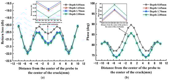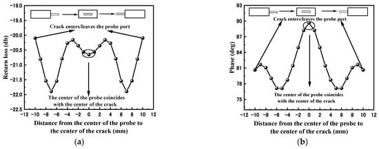 Echo signal characteristics of crack defects: (a) return loss variation curve; (b) echo phase variation curve.