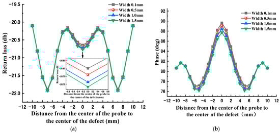 Echo signals of different width defects: (a) return loss variation curve; (b) echo phase variation curve.