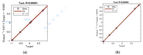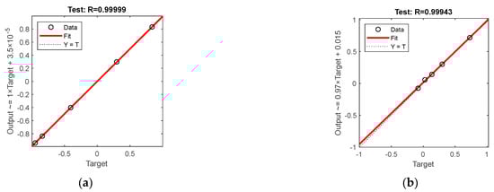 Test set R-factor for defect width prediction: (a) CSAPSO-BP algorithm; (b) PSO-BP algorithm.