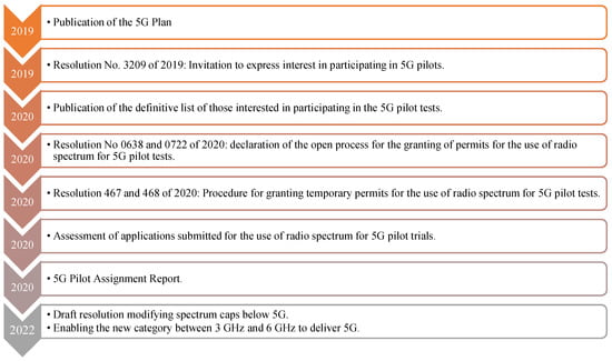 - MINTIC Colombia Resolución 003209 de 2019. Available online: https://mintic.gov.co/micrositios/plan_5g//764/articles-162285_recurso_1.pdf (accessed on 14 July 2022).