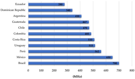 - GSMA 5G and the 3.3–3.8 GHz Range in Latin America. Available online: https://www.gsma.com/spectrum/wp-content/uploads/2020/11/5G-and-3.5-GHz-Range-in-Latam.pdf (accessed on 19 July 2022).