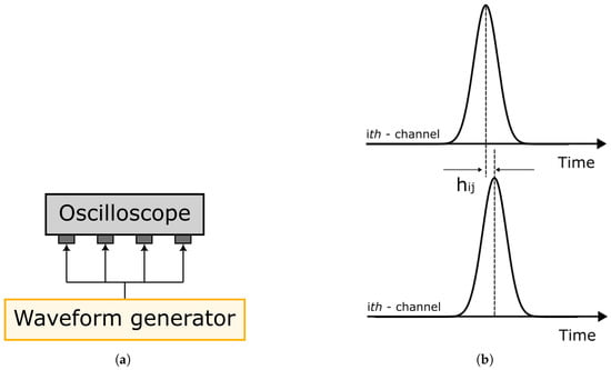 In Figure 2b, is the jitter between the i-th and j-th channels of the oscilloscope used, i.e., the differential variation in time between channels introduced only by the instrumentation. The expected jitter in an ideal measurement system is null.