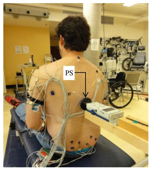 EMG signals were recorded from the following eight upper limb and trunk muscles: Deltoid Anterior (DA), Deltoid Posterior (DP), Pectoralis Major Clavicular (PMC), Pectoralis Major Sternal (PMS), Biceps Brachii (BB), Triceps Brachii (TB), Trapezius Descending (TD) and Latissimus Dorsi (LD). The skin area was cleaned with alcohol wipes and the electrodes were attached in pairs with a center-to-center distance of 25 mm, based upon recommendations reported in the previous literature []. After similar skin preparations, a ground electrode was attached to the anterior aspect of the leg over the tibial bone. The EMG signals were recorded with a commercially available EMG system (TeleMyo 900, Noraxon, Scottsdale, Arizona, USA). All EMG signals and hand switch data were sampled at 1200 Hz.