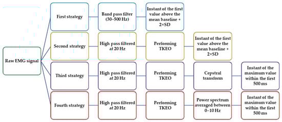 Estimated muscle onset based on different strategies.