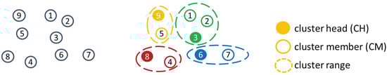 From Equation (1), we can recognize that mobile devices may incur heavy interference when numerous devices select the same wireless channel. By clustering mobile devices to reduce excessive transmissions in a wireless channel, the uplink transmission rate can be improved.