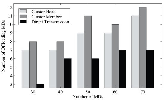 The numbers of offloading MDs for various algorithms.